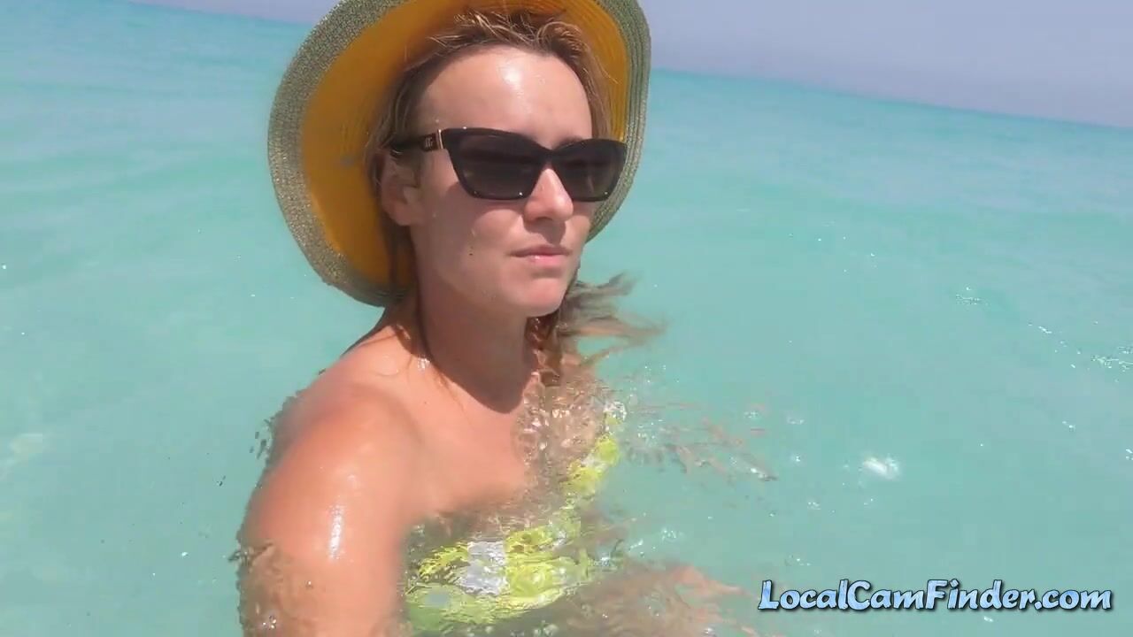 A daring blonde Russian amateur with a big ass goes for a swim in the Atlantic Ocean in Cuba, baring it all in public with a bold exhibitionist streak.