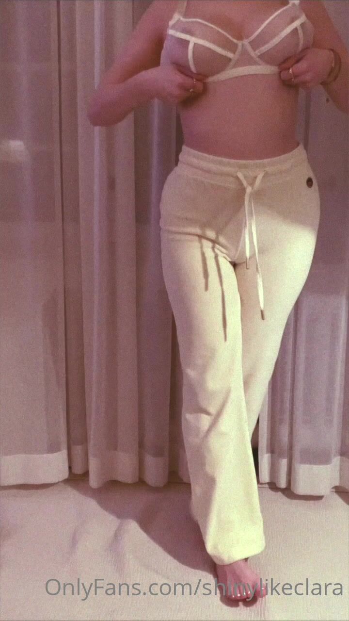 Swedish Shinylikeclara remove her bra and show off her body
